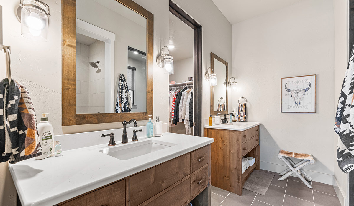 The main-level primary suite boasts a generous walk-in closet and a spa-inspired en suite bath,